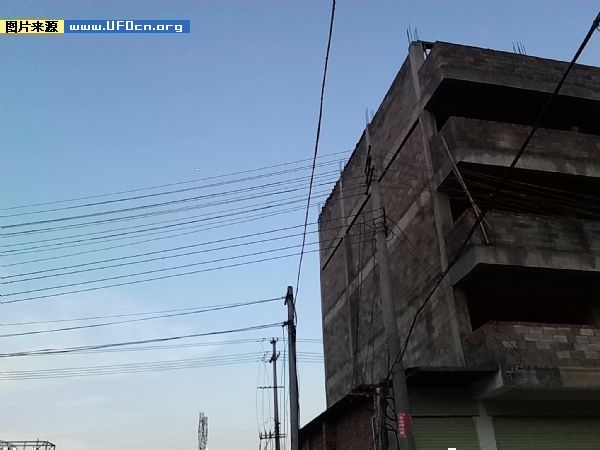 7月1日是建党周年纪念日,所以,日期也就记得是7月1日后一两天是样子吧,那天下午下班,我骑着电动自行车回家,看到右手侧有一圆形飞行物朝着左侧飞行,很小,也就绿豆那么大,当时以为是气球,可是,它飞到路旁高压线塔旁时,忽然消失了。我想,那应该不是气球,于是,在天空中寻找,天空是一片晴朗,万里无云,可是就是看不到那圆形飞行物。它消失时,我正好准备右转。我一边慢慢骑着电动车,一边往天上看,走了大概三百或五百米,看到一个白色飞行物从我身后飞来,于是,我停下车观察,可是那飞行物看着挺像是飞机,仔细看又不太像飞机,于是,我在犹豫中拍下这张图片。拍下图片后,继续在原地观察,后来,这飞行物被图片右侧的楼房挡住,我赶紧骑车沿着道路到楼房另一侧观察,可是,尽管我边骑边往天上看,直至不远处的空地都没看到这白色的飞行物。 |